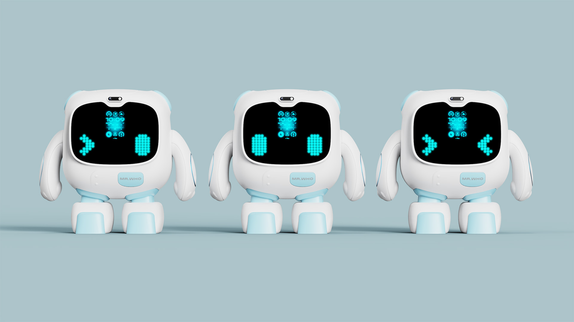 定位可爱亲和风格造型,对问诊医生进行造型概括设计,局部沿用医生特征。硅胶造型赋予产品亲和力。通过点阵屏实时和用户反馈。屏幕5°倾斜设计更符合人机工学。