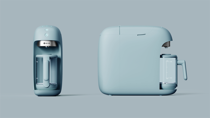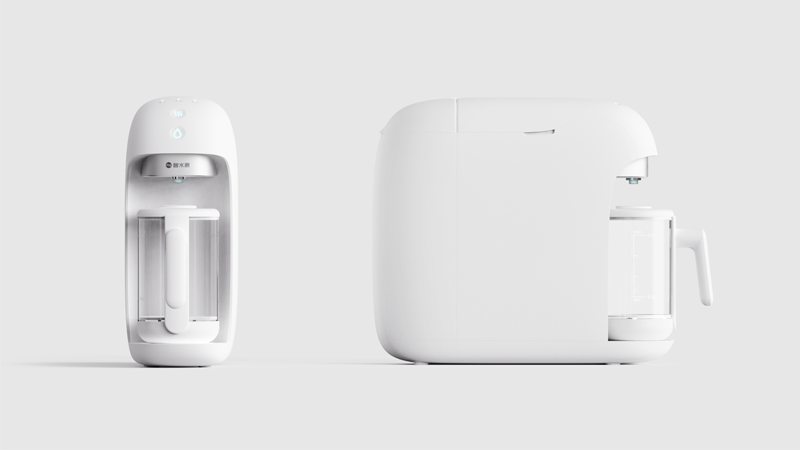 整体设计小巧精致,造型饱满圆润,给人以亲和软萌映像,拉近人与产品距离,设计配套开水壶,更加符合国人更多用水习惯。