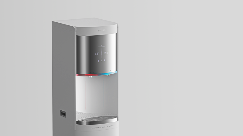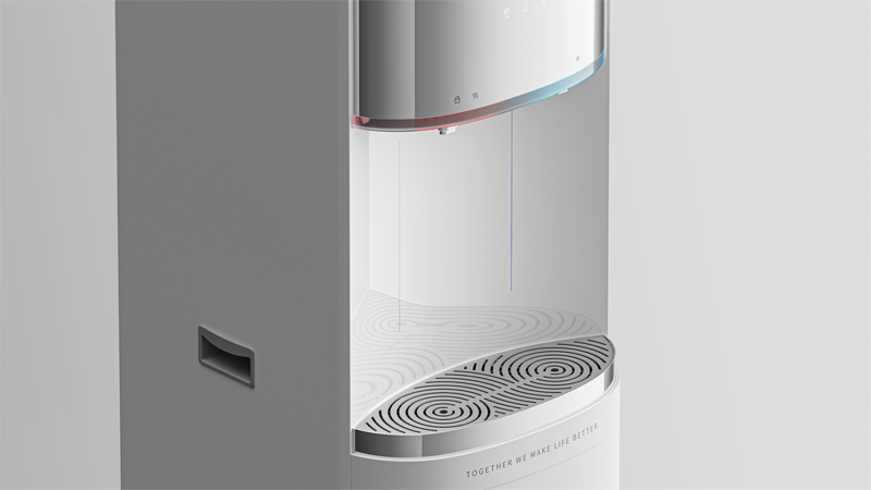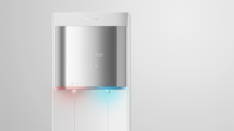 整体设计优雅大气,弧面造型,区别于传统水机”方硬“造型。精致镜面触控面板,体现科技之美,搭配下方流动灯光,示意水温变化,氛围感满满。