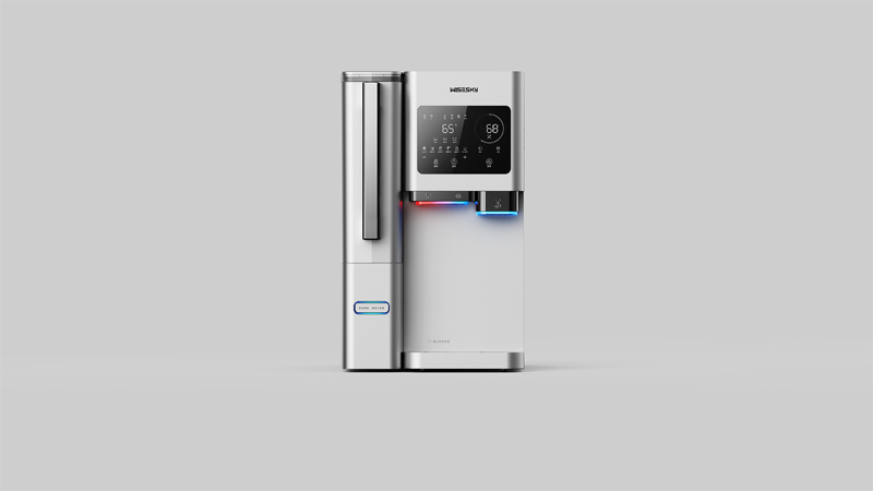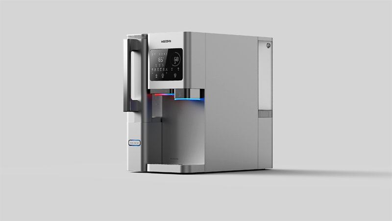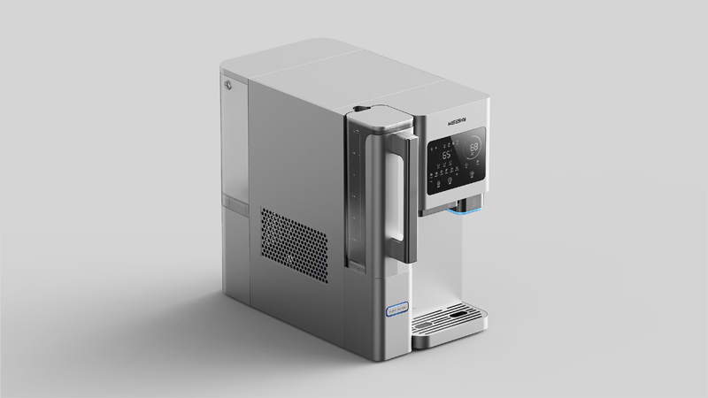 该机型为台面式设计,无需专业安装,使用方便,将传统净饮水机与制冰机功能整合,功能强大,体积小巧。整体设计极简克制,德式包豪斯风格设计,全金属质感机身,极简大屏,左右分区操作,精致的实用主义