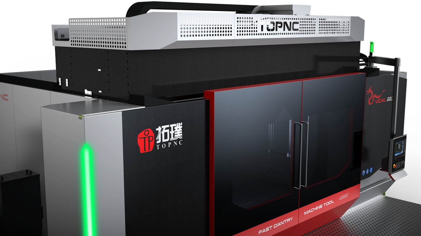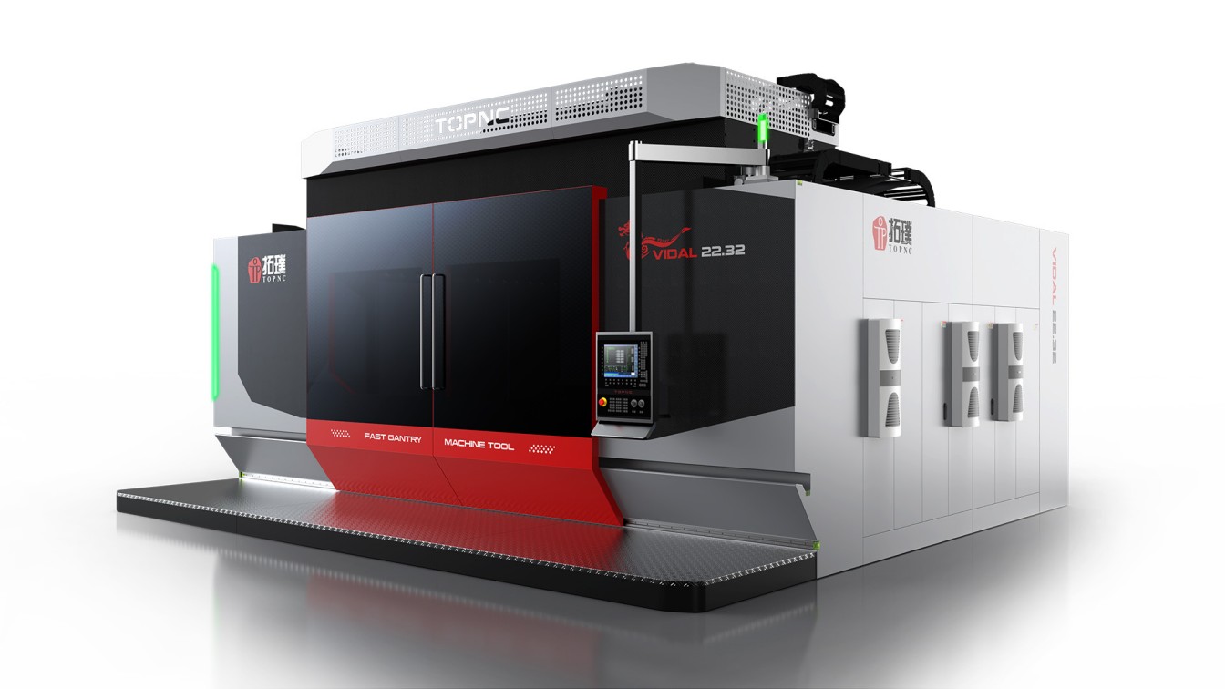 上海拓璞数控高速龙门数控机床,新产品开发全新外观设计,外观上结合大面积亚克力碳纤肌理增加材质对比,力求体现高速龙门的主梁材质工艺,打造高识别度、专业大气、干练的产品视觉效果,细节设计增强产品质感彰显品牌气质,提升产品竞争力和品牌识别度和影响力。