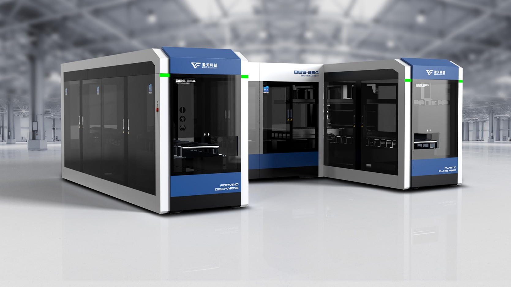 常州盈天自动化地板包装机,针对地板包装机的工况环境和工位要求,对产品框架进行外观包覆,外观设计上融入企业PI融入产品造型;既提升了视觉效果又不影响产品功能实用性,通过外观设计和涂装提升品牌识别度和影响力。